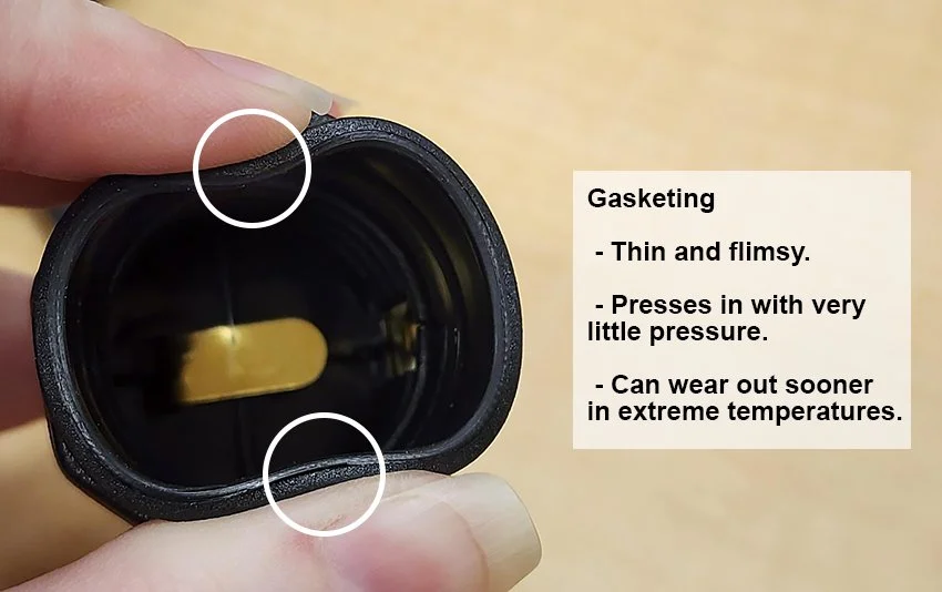 This patio string light uses outdoor rated male and female plugs. These are pretty sturdy and definitely the best plugs out of all of the other patio string lights we looked at. The female plug also has protective cap. The only downside is that they are not tightly molded to the wire, leaving some gaps that can allow water ingress.